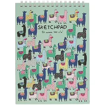 Скетчпад А4, 80 л, блок - белый офсет 100 г/м2, арт. 50586/4 КАКТУСЫ И АЛЬПАКИ /обложка полноцветная печать, твёрдый переплёт на гребне, матовая ламинация,