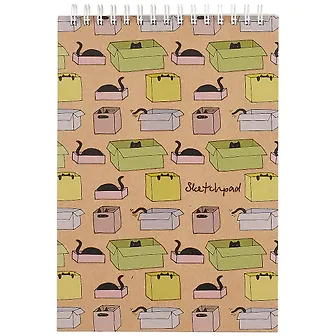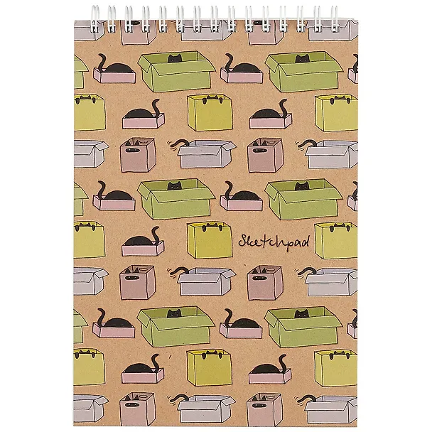 Скетчбук A5 40 листов "Кошки в коробках", нелинованный, 120г/м2, обложка крафт картон, выборочный лак, евроспираль, Listoff