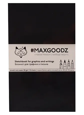 Скетчбук Maxgoodz для графики/письма черный (А5) (32л)