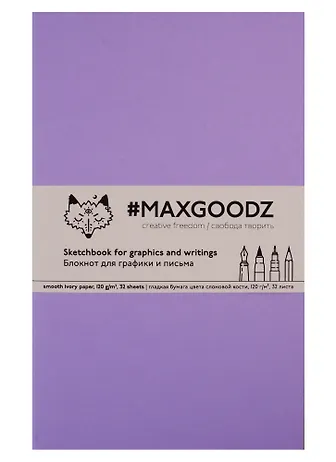 Скетчбук Maxgoodz для графики/письма лавандовый (А5) (32л)