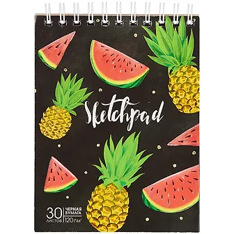 Скетчбук А6 30л "Фруктовый микс" черн.внутр.блок, 120г/м2, гребень