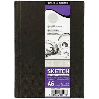 Скетчбук в твердой обложке черного цвета с приятной фактурой, 54 листа. Мягкая бумага цвета слоновой кости изготовлена без использования кислот, среднее зерно. Прекрасно подойдет для рисунков и быстрых набросков карандашом, всеми видами ручек, линерами, маркерами или тушью. Удобный формат для путешествий А6. Производство Великобритания.