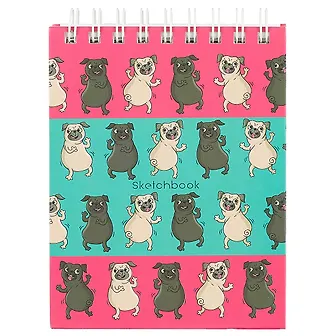 Скетчбук с твердой обложкой А6 (125х160), 80л. 7БЦ, матовая ламинация. Шир.евроспираль сверху.Бум–100г/м2,без лин.. Смешные мопсы (графика) (125х160, 80л. ). ТС6804496