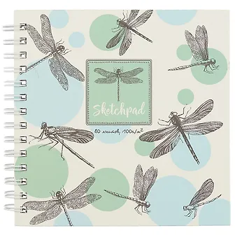 Скетчбук «Стрекозы и бабочки», 80 листов, 19.5 x 20 см