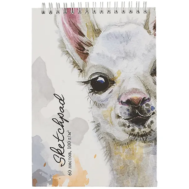 Скетчбук А5 60л "Заяц и лама" белый офсет, 100г/м2, тв.обложка, гребень