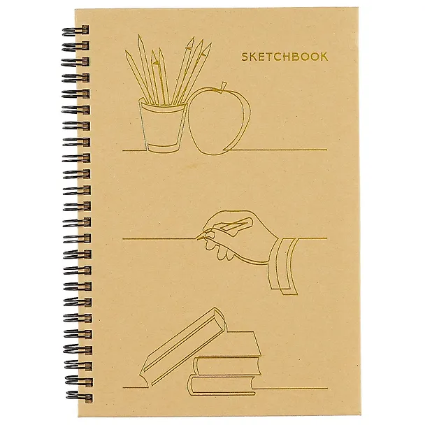Скетчбук A5 80л "Волшебные линии", тон. слоновая кость, нелинов., 100г/м2, тв.обложка крафт тисн. фольгой под зол., широкая евроспираль, Listoff