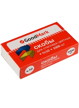 Скобы №10 1000шт цветные, к/к, GoodMark
