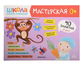 «Школа Семи Гномов. Мастерская 0+» — это набор красочных альбомов для увлекательных занятий творчеством с детьми от 0 до 1 года. Занятия на близкие и понятные ребенку темы расположены по мере усложнения: поступательно переходя от освоения простых навыков к более сложным заданиям. Результатом каждого занятия станет законченное произведение, которое ребенок создал сам. В конце альбома маленького художника ждет большое итоговое задание, где он сможет применить все свои новые умения.