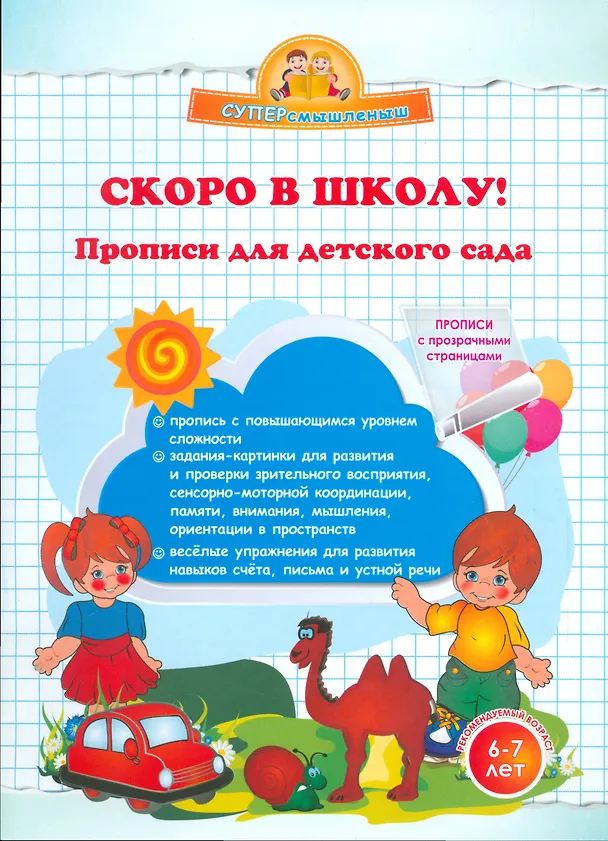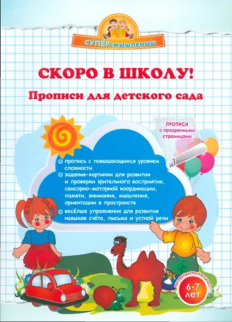 .Рекомендуемые упражнения и интересные задания помогут проверить и развить зрительное восприятие малыша, его сенсорно-моторную координацию, память, внимание, мышление, ориентацию в пространстве, навыки счёта, письма и устной речи. Будут способствовать наработке таких важных качеств как терпение, усидчивость и стремление добиваться хорошего результата.