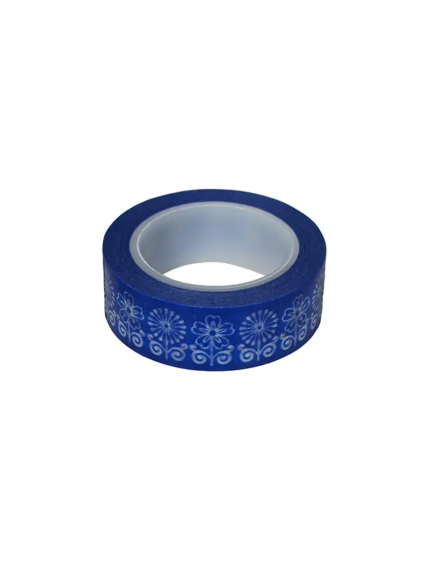 Скотч декоративный бумажный Синий цветочный контур (859172) (1,5см х 9м) (упаковка)