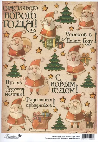 Скрап-карта "Деды Морозы" представляет собой изображение для вырезания и аппликации в скрапбукинге и декупаже, распечатанная на самоклеящейся бумаге. Скрап-карта легко клеится на любую чистую и сухую поверхность. При помощи скрап-карты легко создавать оригинальные альбомы, открытки, поздравительные конверты и многое другое.