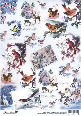 Скрап-карта "В зимнем лесу" представляет собой изображение для вырезания и аппликации в скрапбукинге и декупаже, распечатанная на самоклеящейся бумаге. Скрап-карта легко клеится на любую чистую и сухую поверхность. При помощи скрап-карты легко создавать оригинальные альбомы, открытки, поздравительные конверты и многое другое.