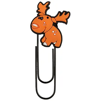 Знаете ли вы, что самое раннее упоминание книжных закладок относится к XVI-му веку? Серебряную закладку для книг подарили королеве Англии Елизавете I. С тех пор появилось множество разных видов закладок. Например, такой, в форме большой скрепки. Посмотрите, какой забавный лосик её украшает! С ним вы точно не потеряете интересное место в книге.