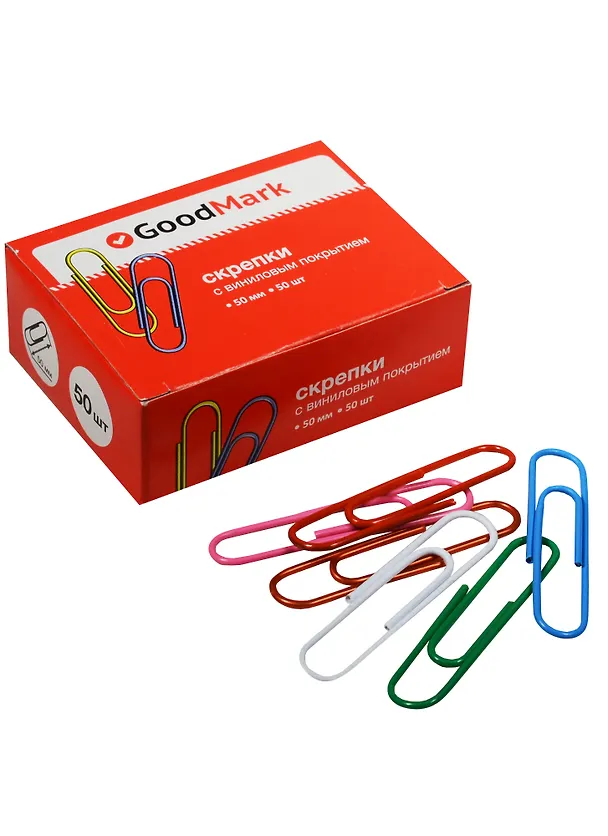 Скрепки 50мм 50шт ассорти, винил., круглые, к/к