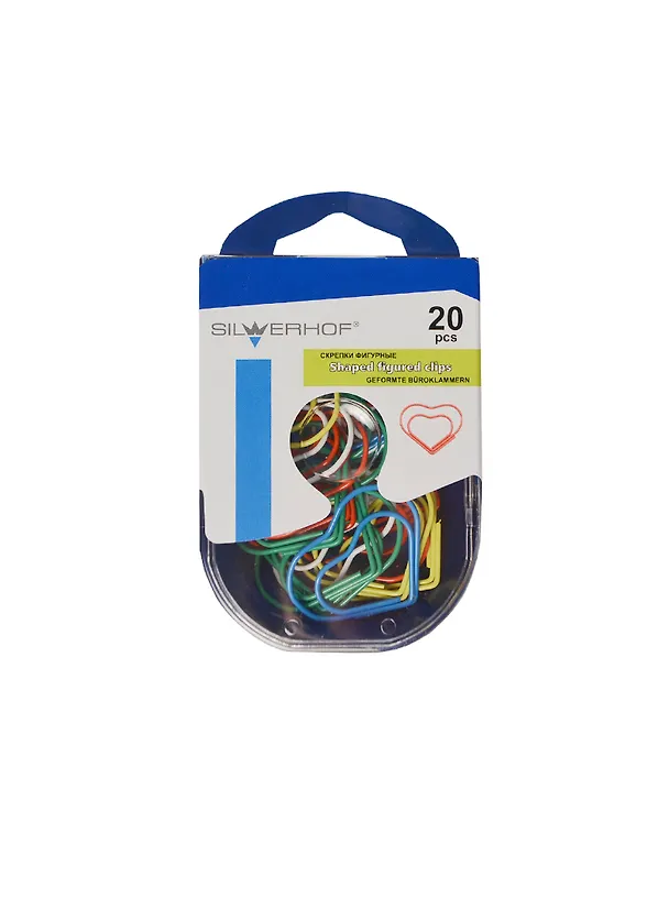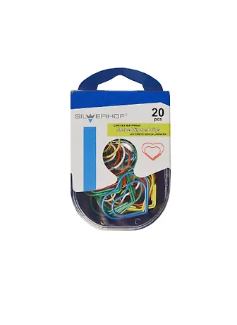 Скрепки фигурные 20шт "Сердце" металл с пластиковым покрытием, пластиковая упаковка, подвес,Silwerhof