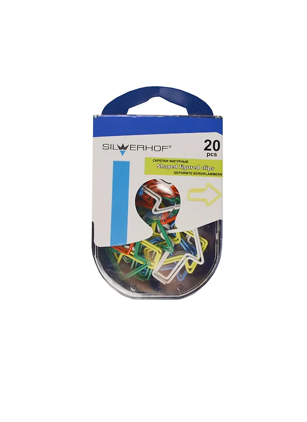 Скрепки фигурные 20шт "Стрелка" металл с пластиковым покрытием, пластиковая упаковка, подвес, Silwerhof