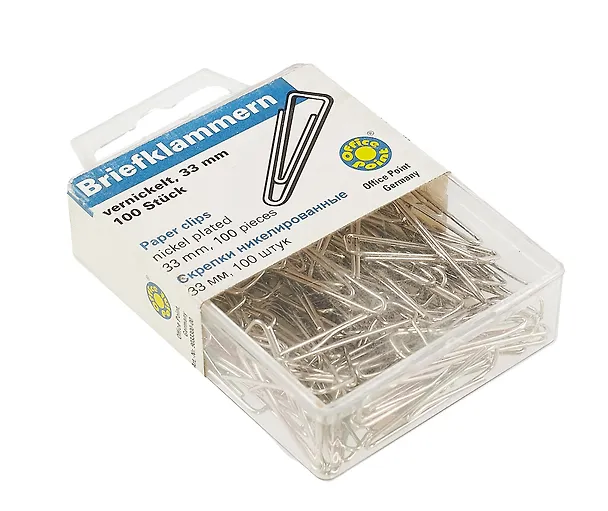 Скрепки, Office Point/Офис Поинт, 33 мм, 100 шт, треугольные, в пластике