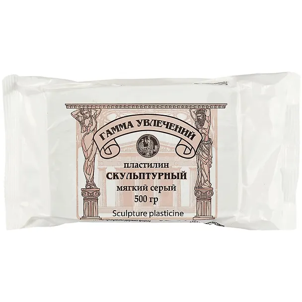 Пластилин скульптурный 500г "ГАММА УВЛЕЧЕНИЙ" серый, мягкий, Гамма