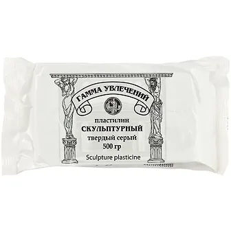 Пластилин скульптурный 500г "ГАММА УВЛЕЧЕНИЙ" серый, твердый, Гамма