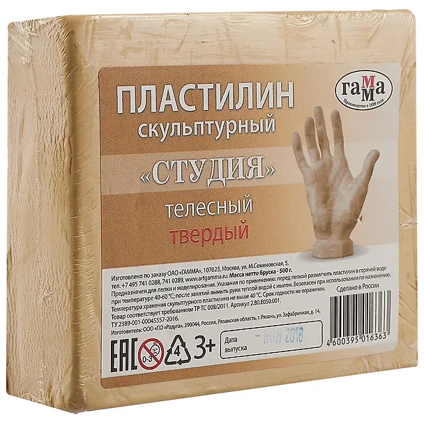 Серия «Лицей» ГАММА разработана для школьников и учащихся художественных училищ. Твёрдый телесный пластилин «Лицей» — идеальный материал для скульпторов. Хорошая пластичность и оптимальная твёрдость. Вес брикета 0,5 кг