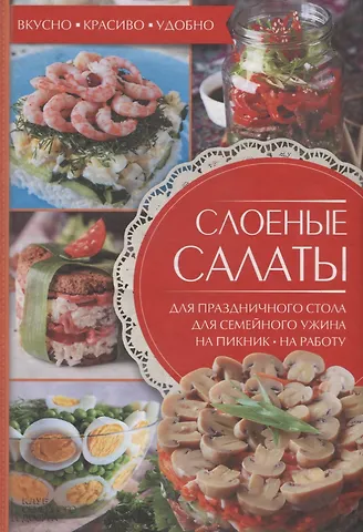 Хотите, чтобы ваш салат из самых простых продуктов выглядел стильно, как в лучшем ресторане? Более 75 проверенных рецептов слоеных салатов украсят стол для торжества и сделают праздничным простой семейный ужин, станут полезным и сытным витаминным перекусом на пикнике или в офисе. Укладывание ингредиентов аккуратными слоями, без перемешивания, позволит сохранить свежесть и сочность овощей, фруктов и зелени, а заправки из майонеза, сметанно-лимонного соуса или йогурта, растительного масла с лимонным соком и соевым соусом или горчицей подчеркнут их вкус. Для приготовления салатов вам понадобятся самые привычные продукты: овощи и фрукты, мясо и птица, яйца и сыр, рыба и морепродукты, зелень и гр
