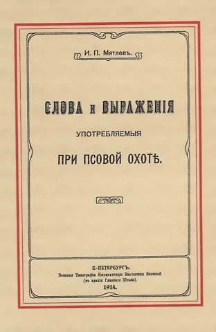 Тираж 30 экземпляров. Репринт с издания СПб 1914 гг. Толковый словарь старинных охотничьих терминов, слова разбиты по 13 тематикам. Отличный подарок охотнику. Книга изготовлена по технологии "печать по требованию".