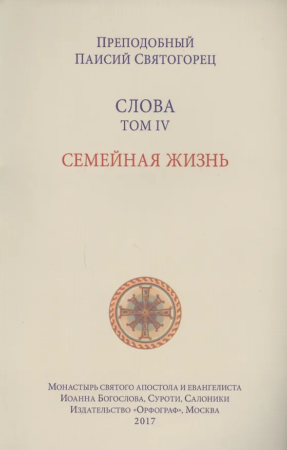 .Книга "Семейная жизнь" - четвертый том "Слов" преподобного Паисия Святогорца. Удивительна точность, с которой старец Паисий, с юности избравший монашеский путь, говорит о семейной жизни, об отношениях детей и родителей, мужа и жены. Наученный жизнью, опытом общения с людьми, а главное - просвещенный Богом, преподобный дает незаменимые наставления для всех возрастов. Выбор пути, трудности новобрачных, бесплодие, аборты, рождение и воспитание детей, особая роль материнства, скорби и испытания в семейной жизни - эти и многие другие темы старец Паисий раскрывает с присущей ему глубиной и ясностью. Указывает преподобный и на самое ценное наследство, которое предназначено для любящих и з