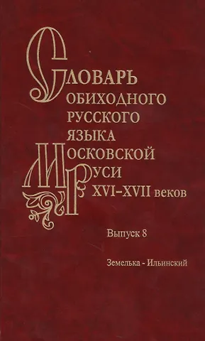 Восьмой выпуск Словаря (вып. 1-7 вышли в 2004-2016 гг.) подготовлен коллективом сотрудников филологического факультета Санкт-Петербургского государственного университета и Института лингвистических исследований Российской Академии наук. Словарь содержит систематическое описание лексики и фразеологии русского языка XVI-XVII вв., начального периода формирования русского национального языка, по материалам группы памятников литературно-письменного языка этой эпохи на народно-разговорной основе, данным региональных исторических словарей русского языка. "Словарь обиходного русского языка Московской Руси XVI-XVII вв." является экспериментальным историческим словарем, в котором, на основе выдвинутых