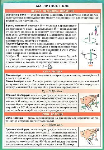 Наглядное пособие поможет закрепить и частично расширить сведения, полученные школьниками на уроках физики. Пособие отличают удобный формат и ёмкость изложения. Сжатые теоретические сведения по темам "Магнитное поле" и "Электромагнитная индукция", основные правила и определения, рисунки и схемы помогут школьникам быстро сориентироваться в материале, проанализировать и выбрать верное решение задачи. Пособие будет полезно учащимся при подготовке к контрольным, самостоятельным работам и подготовке к ЕГЭ.