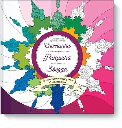 .Книга "Снежинка. Ракушка. Звезда" полна сложных и божественно красивых иллюстраций, в которых используются узоры из петель, волн и спиралей, созданные Алексом Беллосом и его другом - художником и математиком Эдмундом Харрисом. Она дает вам возможность развить свой художественный талант и насладиться эстетическим и концептуальным совершенство