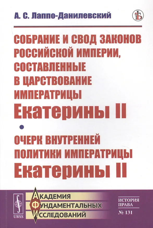 Вниманию читателей предлагается книга выдающегося отечественного историка А. С. Лаппо-Данилевского (1863-1919), включающая две его работы, посвященные изучению периода царствования русской императрицы Екатерины Великой. В сочинении "Собрание и свод законов Российской империи..." исследуется процесс создания первого сборника законов Российского государства, составленного во время правления Екатерины II, но так и не опубликованного. Автор рассматривает ход работ по подготовке "Описания внутреннего правления Российской империи", систему изложения и цель, преследуемую его составителями, а также обстоятельства, помешавшие обнародованию этого документа. Вторая вошедшая в книгу работа знакомит чита