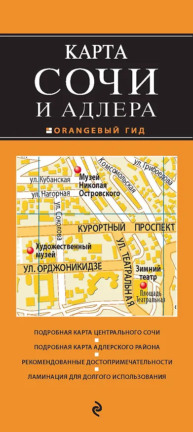 На карте Адлерского района (М 1:17 000) вы найдете адреса кварталов, основные и транзитные проезды по городу, объекты социально-культурного значения, места отдыха. Кроме того, приведен полный перечень улиц города.