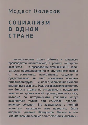 На каком языке говорил Сталин? Кто придумал главные пункты его программы? С кого брал пример сталинский СССР? В чём главное отличие Сталина от Ленина и Троцкого? Кто и как заплатил за все эти разногласия? В снабжённой обширным справочным материалом монографии Модест Колеров исследует генезис идеи о построении «социализма в одной стране» в интеллектуальных дискуссиях на эту тему, в итоге напрямую отразившихся на судьбах сотен миллионов людей.