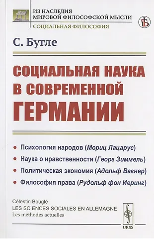 Вниманию читателей предлагается книга французского социолога и философа Селестена Бугле (1870-1940), посвященная исследованию положения социальной науки в современной автору Германии. В начале работы дается краткий обзор истории развития метода социальных наук в Германии в XIX веке. Основная часть книги включает четыре очерка, в которых представлены концепции четырех авторов из различных областей социальной науки - психологии народов (М. Лазарус), науки о нравственности (Г. Зиммель), политической экономии (А. Вагнер) и философии права (Р. фон Иеринг). Бугле резюмирует взгляды каждого ученого, определяет его метод исследования, дает характеристику его исторического положения, анализирует влия