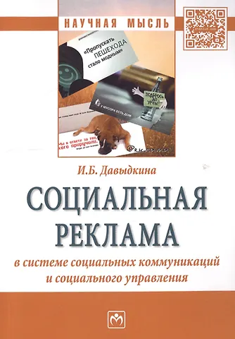 В монографии обосновываются возможности и необходимость применения социальной рекламы как инструмента взаимодействия государства и общества, предпринята попытка осветить механизм внедрения социальной рекламы в современные управленческие практики, отвечающие трансформирующимся условиям общества.