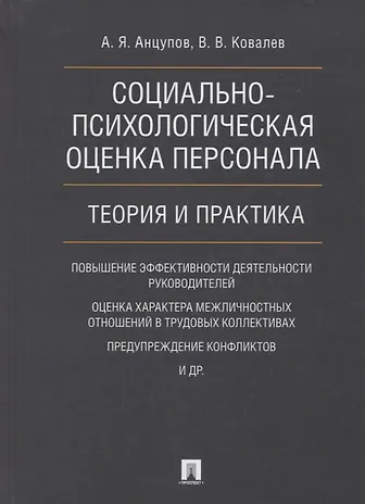 В монографии представлены оригинальные авторские разработки теории и практики социально-психологической оценки персонала. Авторы - один из ведущих конфликтологов России профессор Анцупов А.Я. и специалист в сфере теории и практики оценки и развития персонала доцент Ковалев В.В. Основное содержание работы представляет подробное описание методологического подхода к практике оценки персонала, основанного на технологии применения модульного социотеста Анцупова. Основное направление исследований - изучение всей системы и динамики взаимоотношений в малой социальной группе, выявление различных аспектов конфликтных, дружеских и других типов отношений, определение статусно-ролевых позиций каждого сот