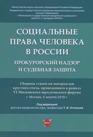 Социальные права человека в России: прокурорский надзор и судебная защита. Сборник статей по материалам круглого стола, проведенного в рвмках VI Московского юридического форума г. Москва, 5 апреля 2019 г.