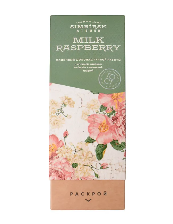 Шоколад молочный РАСКРОЙ с малиной, имбирем и лимонной цедрой, 100г