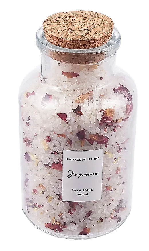 бутончики цветов, расслабление от соли, красивая баночка и дизайн.