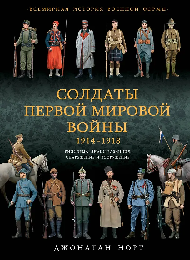 «Солдаты Первой мировой» — полная энциклопедия истории военной формы и снаряжения армий, сражавшихся на фронтах «Великой войны». На ее страницах показана униформа не только основных стран Антанты и Тройственного союза (Англии, Франции, России, Германии и Австро-Венгрии), но и вообще всех стран, втянутых в этот ужасный конфликт.