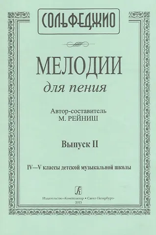 Маргарита Израилевна Рейниш - известный педагог, заслуженный работник культуры России, на протяжении 35 лет преподает сольфеджио и музыкальную литературу в Детской школе искусств № 7 имени М. Ростроповича в Санкт-Петербурге. Сборник «Мелодии для пения» М. Рейниш содержит большое количество нового материала. Это песни самых разных народов. Они систематизированы автором-составителем по учебным темам, а темы для удобства педагога поделены, в свою очередь, на сколь возможно более мелкие подразделы. Особенностью пособия является также то, что в нем собраны мелодии разной сложности - так, чтобы сборник был полезен при обучении детей с различным уровнем способностей. Ныне пособие выходит новым изда