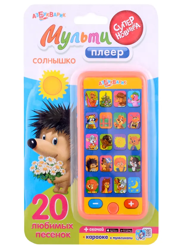 Классный плеер для детей, любимые мультфильмы и песенки из них, качественный пластик, звук хорошие, можно регулировать. Отличная цена в магазине, лучше чем на других площадках. Озвучка хорошая (бывало другие певцы были и совершенно по другому пели песни), правильная