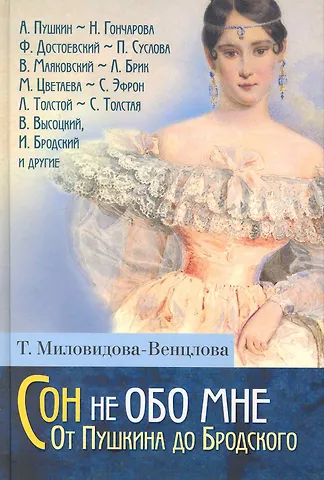 Татьяна Миловидова-Венцлова всегда находилась с эпицентре литературной жизни. Ее муж — Томас Венцлова, известный литовский поэт, адресат многих стихотворений Иосифа Бродского. "Сон не обо мне" — это психологические портреты известных русских литераторов. Книга о гибельной страсти, о вдохновении, о верности и о предательстве… Полные страданий и мучительной любви взаимоотношения Александра Пушкина и Натальи Гончаровой, драма Федора Тютчева и Елены Денисьевой, криминально-тюремные злоключения знаменитого русского драматурга Александра Сухово-Кобылина, подозреваемого в убийстве своей возлюбленной-француженки. Эзотерическое повествование оккультистки Минцловой, которая дружила с самыми знаменитым