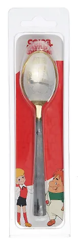 Симпатичная металлическая ложка с красивым рисунок для ребенка будет отличным подарком. Упакована ложка надежно. Ручка у ложки удлиненная, за счет этого удобно держать ее в руках во время приема пищи. Ручка немного изогнута, ложка довольно глубокая. Рисунок нанесен на ложку в виде гравировки.