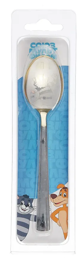 С первого взгляда кажется совсем простой и обычной, но ложка классная. На ней есть гравировка кота Матроскина, окаемка на ложке позолоченная.