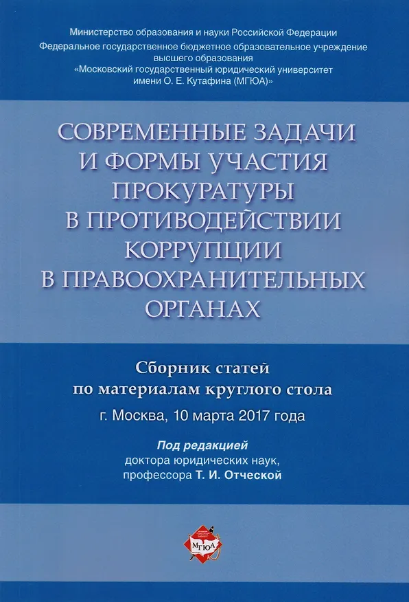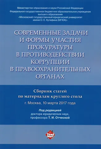 В сборник вошли статьи участников круглого стола "Современные задачи и формы участия прокуратуры в противодействии коррупции в правоохранительных органах". Круглый стол был организован кафедрой Организации судебной и прокурорско-следственной деятельности Университета имени О.Е. Кутафина (МГЮА) 10 марта 2017 г.