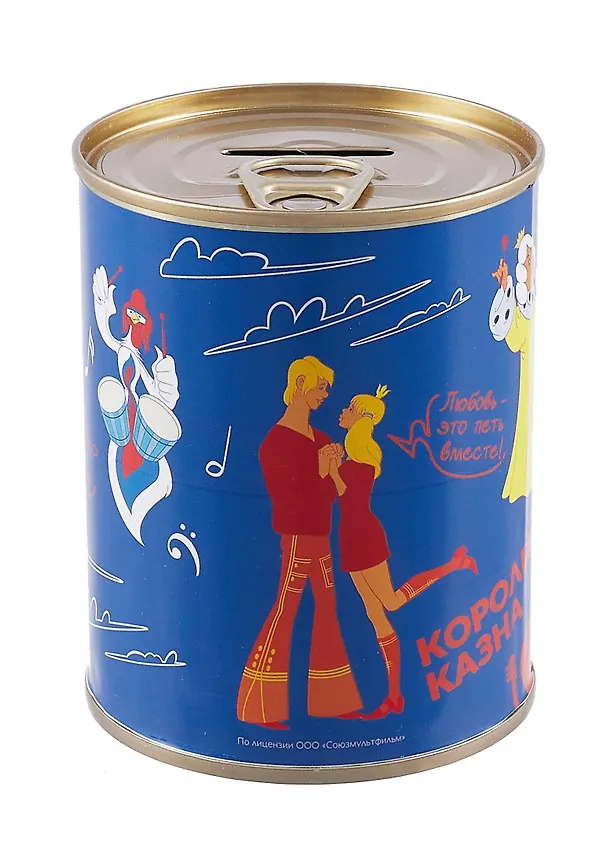 Прикольная копилка, увидев ее в магазине, я даже не сразу поняла, что это именно копилка. Ребенку копилка очень понравилась, раньше такую не видел. Размером копилка как обычная консервная банка, хоть и металлическая, но очень легкая. Складывать можно хоть бумажные деньги, хоть монетки. Помещается приличное количество. Раскрашена копилка с стиле добрых советских мультиков.