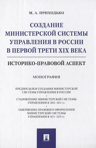 Создание министерской системы управления в России в первой трети XIX века. Историко-правовой аспект. Монография