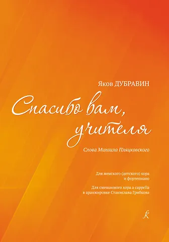 Спасибо вам, учителя. Стихи Михаила Пляцковского. Для женского (детского) хора и фортепиано. Для смешанного хора a cappella в аранжировке С. Грибкова