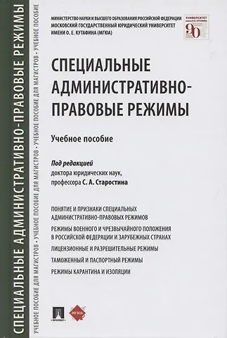 В учебном пособии рассматриваются понятие и признаки специальных административно-правовых режимов, современные проблемы их правового регулирования и обеспечения. Самостоятельные параграфы посвящены анализу конституционных режимов военного и чрезвычайного положения. Авторы предлагают ключевые направления развития теории административно-правовых режимов, пути совершенствования их обеспечения в современных условиях. Пособие предназначено для студентов профильных программ магистратуры юридических и экономических специальностей, слушателей программ повышения квалификации, а также тех, кого интересуют проблемы правового регулирования и обеспечения административно-правовых режимов.
